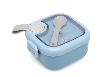 Kiokids contenitore per pranzo blu con cucchiaio grigio